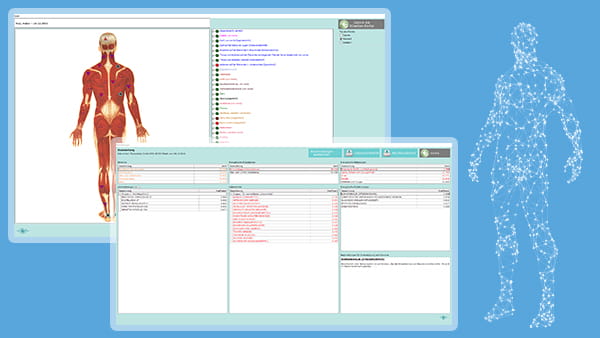 Os dados de scan medidos são comparados com uma extensa base de dados de referência. Os distúrbios bioenergéticos são exibidos visualmente no seu PC ou portátil.